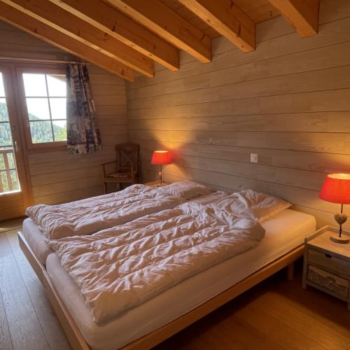 Chalet spacieux avec 6 chambres et 4 salles de bains.